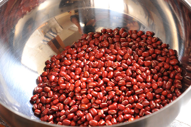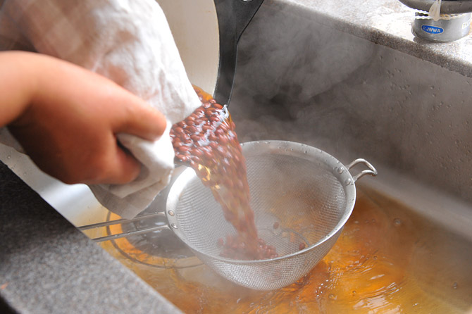 このぴかぴかの小豆を「つぶあん」にするまでは