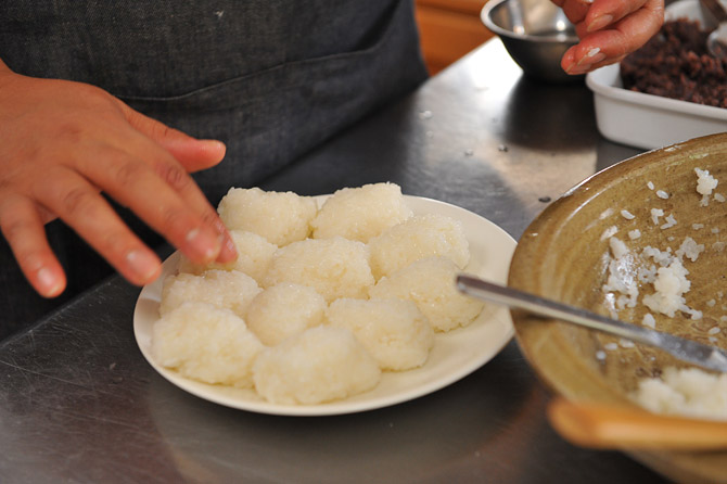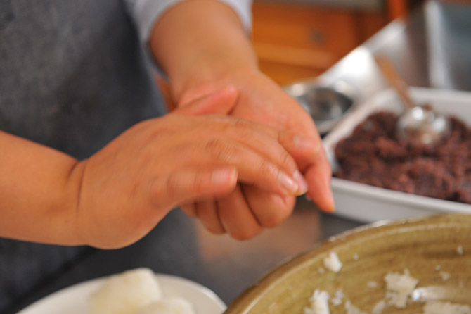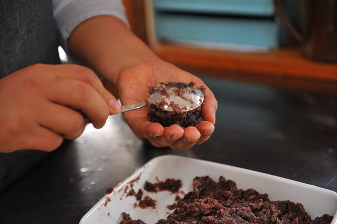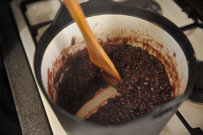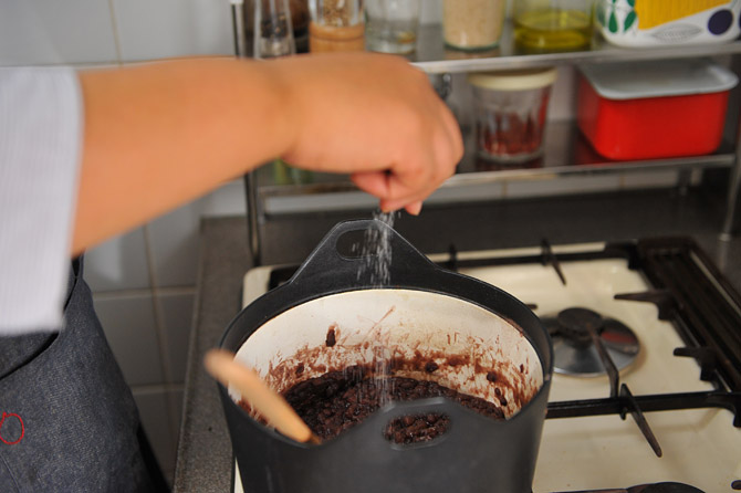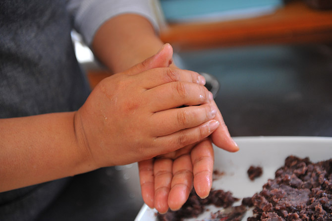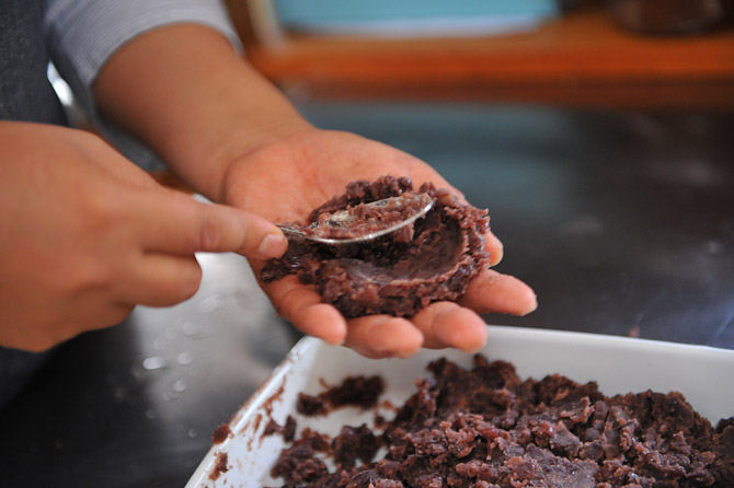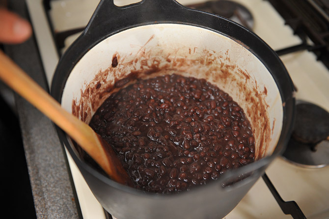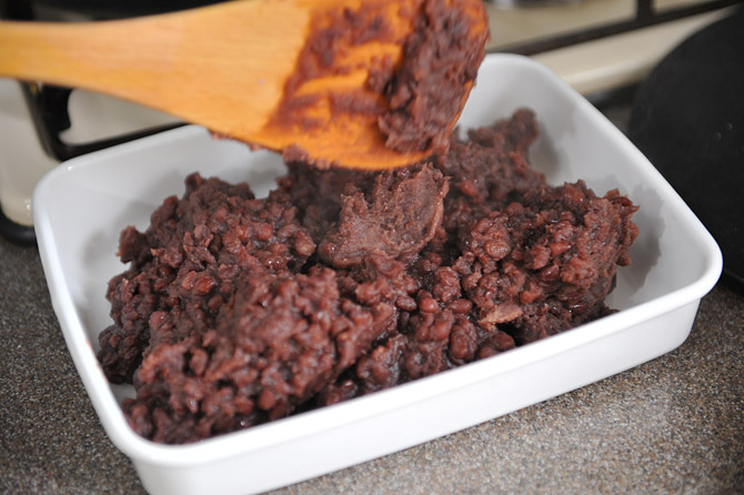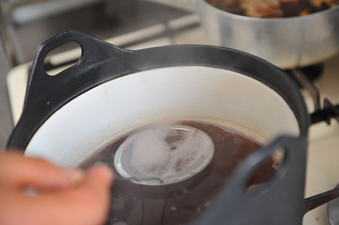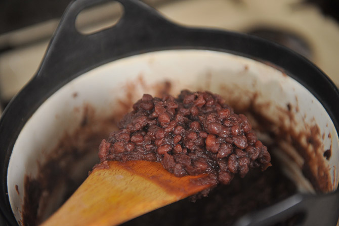 だんだん水気がなくなってきて、もうすぐ「つぶあん」完成です。