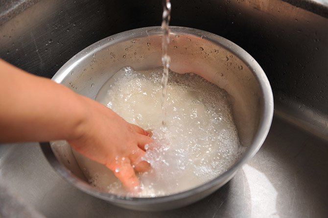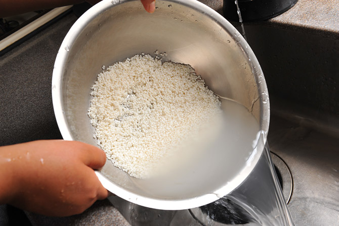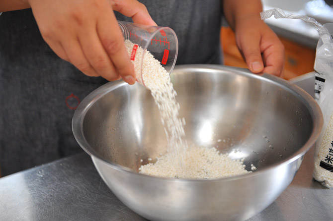 ふつうのお米を1(0.5合)の割合で混ぜます。