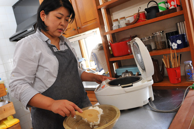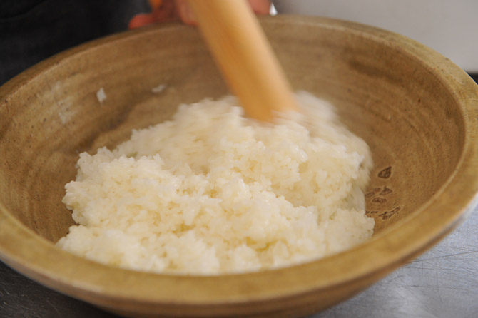 すりこぎがなかったら、しゃもじでもいいでしょう。